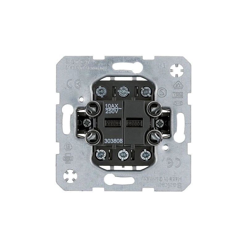 Der Berker 303808 Doppel-Wechselschalter ist ein Unterputz-Wippenschalter-Einsatz, der zwei unabhängige Stromkreise über separate Wechselschaltungen steuert. Ideal für die Beleuchtungskontrolle in Fluren oder großen Räumen, ermöglicht dieser Schalter das Ein- und Ausschalten von zwei Lichtquellen von verschiedenen Stellen aus.