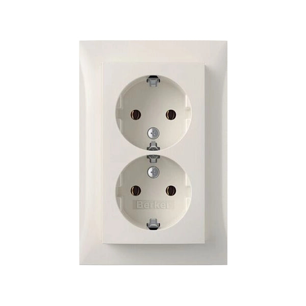 Berker S.1 Schuko Steckdose 2-fach, mit Rahmen, hoch, polarweiß glänzend