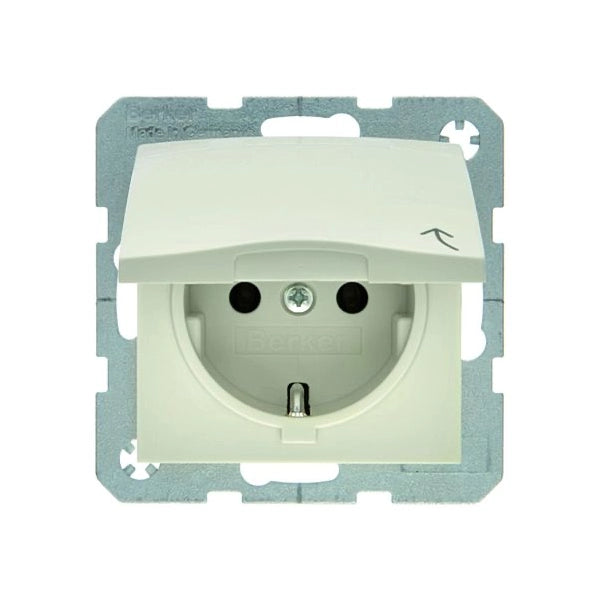 Berker S.1 Schuko Steckdose, Klappdeckel, weiß glänzend