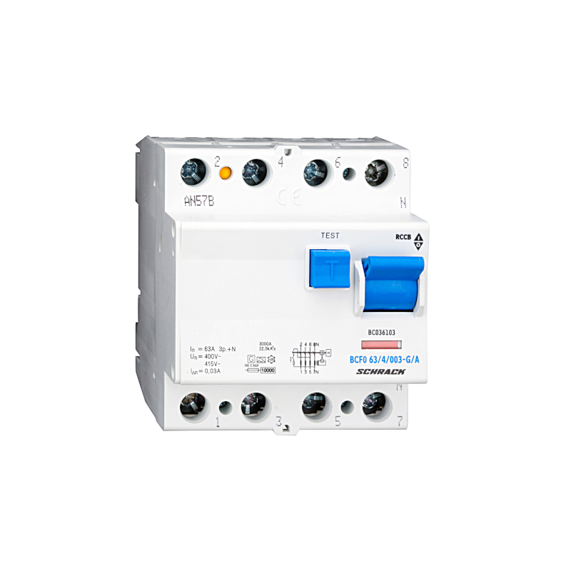 Schrack FI-Schutzschalter, 63A, 4-polig, 30mA, vsf., Bauart G, Typ A (Puls) BC036103—