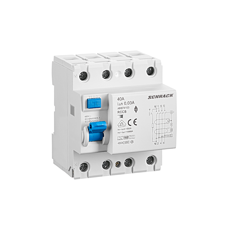 Schrack FI-Schutzschalter, AMPARO, 40A, 4-polig, 30mA, Typ B AR874103—