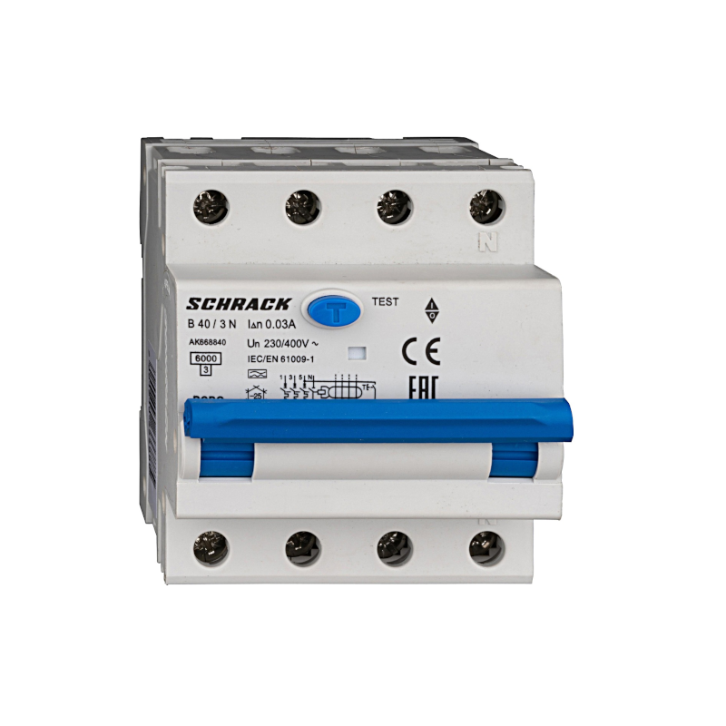 Schrack LS-FI-Schalter AMPARO, 6kA, Kennlinie B, 40A, 30mA, 3+N, Typ A (AK668840--)